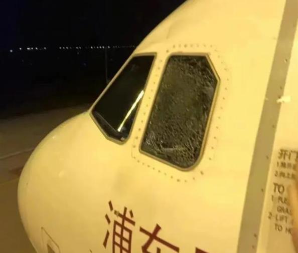 配圖顯示,機身印有“浦東號”的飛機左側風擋出現(xiàn)裂紋。