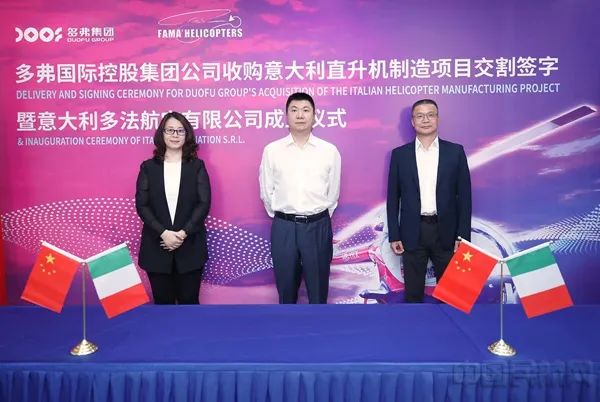 2022年6月28日,多弗集團(tuán)全資收購(gòu)意大利Fama直升機(jī)公司。以全資全鏈條的跨國(guó)收購(gòu)形式從研發(fā)、生產(chǎn)、銷(xiāo)售到知識(shí)產(chǎn)權(quán)各個(gè)環(huán)節(jié),在國(guó)內(nèi)通航民企中尚屬首家。收購(gòu)交割簽字儀式在中國(guó)北京、中國(guó)杭州、意大利米蘭三地以線(xiàn)上遠(yuǎn)程方式舉行。