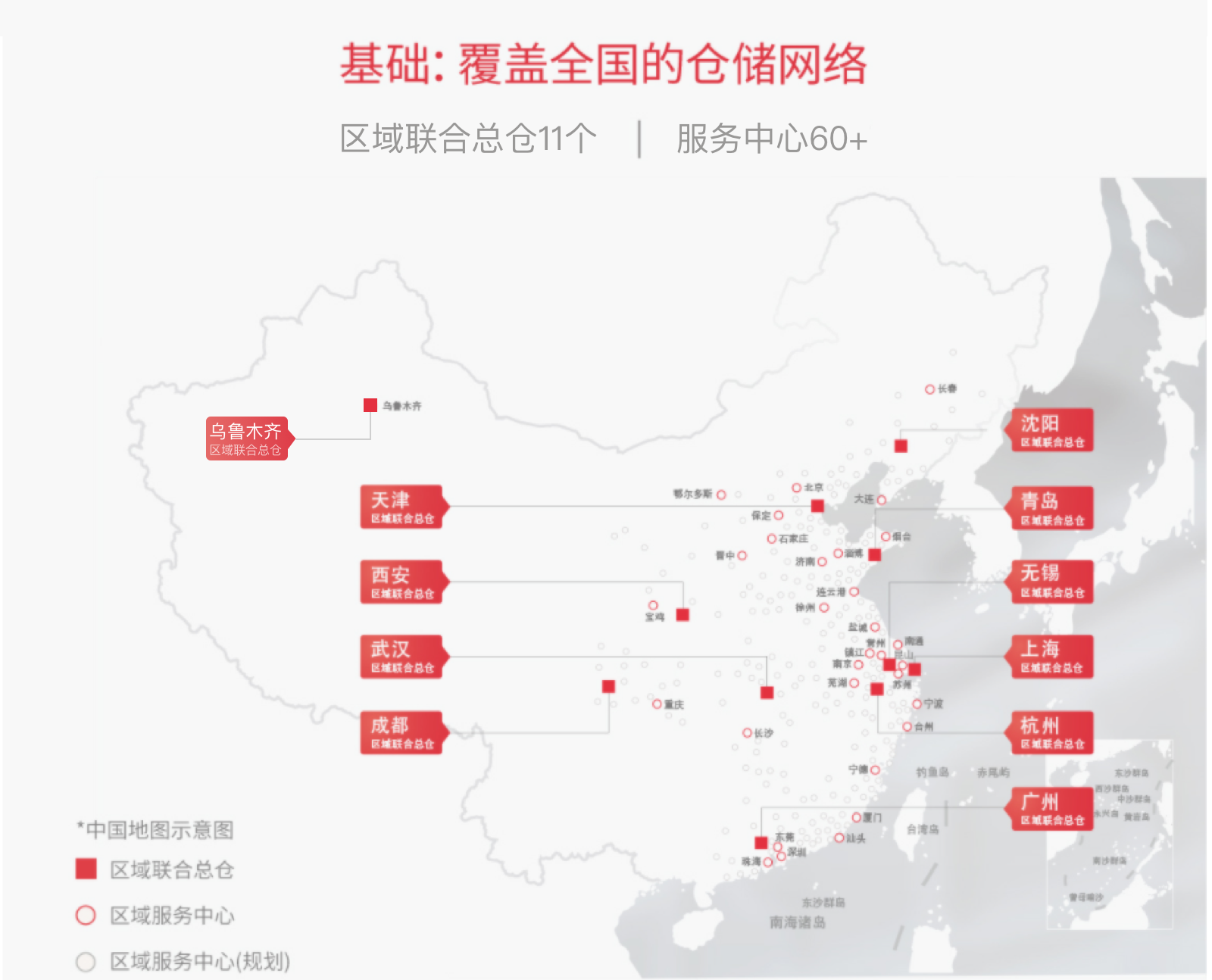 11個區(qū)域聯(lián)合總倉 | 60+區(qū)域服務中心