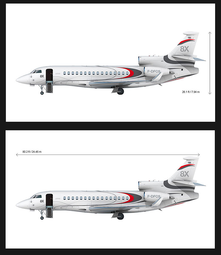 獵鷹8X在乘載8名乘客和3名機(jī)組人員的情況下,能以0.8馬赫的速度直飛6,450海里(11,945公里),并能進(jìn)行大量直飛任務(wù),包括從北京到紐約、香港到倫敦以及上海到洛杉磯等。