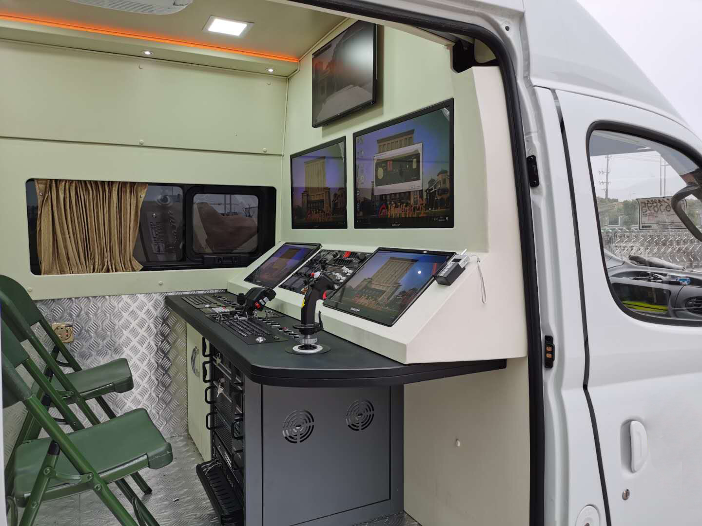 無人機通訊指揮車裝有無人指揮系統(tǒng),可同時操控4架無人機,可配套無人機系列產(chǎn)品,指揮車實時接收無人機偵測圖像和數(shù)據(jù),且車頂天線具備可自動跟蹤功能;