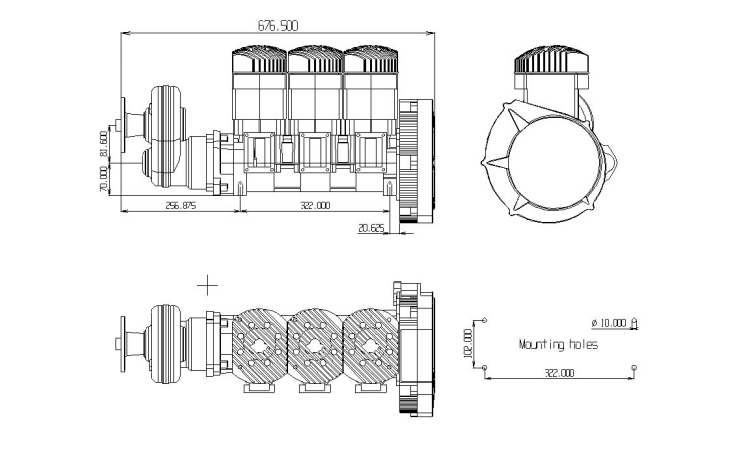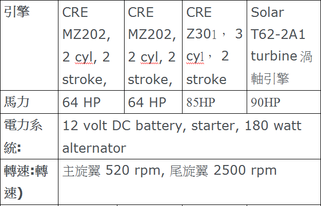 MZ301發(fā)動(dòng)機(jī)是來自加拿大 Compact Radial Engine's - MZ301, 85-hp, 一個(gè)三行程,三個(gè)汽缸和最高動(dòng)力的引擎 。這個(gè)引擎采用 Reed 的進(jìn)氣系統(tǒng),扭力/轉(zhuǎn)速曲線平坦,在引擎操作范圍輸出的動(dòng)力十分穩(wěn)定,MZ301工作轉(zhuǎn)速為6500RPM較其他同級(jí)的引擎之6500~7000RPM為低的轉(zhuǎn)速 ,左右,因此MZ301的負(fù)擔(dān)相對(duì)較輕,也提高了此引擎的信賴度,包括180瓦的發(fā)電機(jī)以提供電力系統(tǒng)及電力起始系統(tǒng)運(yùn)作。