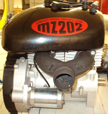 MZ202發(fā)動機來自 Compact Radial Engine's - MZ202, 60-hp, 一個二行程,兩個汽缸和最高動力的引擎 。這個引擎採用 Reed 的進氣系統(tǒng),扭力/轉(zhuǎn)速曲線平坦,在引擎操作范圍輸出的動力十分穩(wěn)定,MZ202工作轉(zhuǎn)速為6000RPM較其他同級的引擎之6500~7000RPM為低的轉(zhuǎn)速 ,左右,因此MZ202的負(fù)擔(dān)相對較輕,也提高了此引擎的信賴度。這個引擎的總重量只有69磅,包括180瓦的發(fā)電機以提供電力系統(tǒng)及電力起始系統(tǒng)運作。
