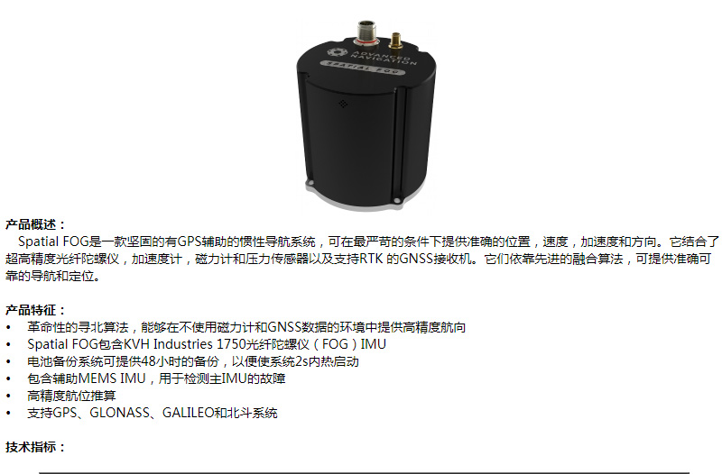 商品名稱:Spatial FOG光纖組合導(dǎo)航