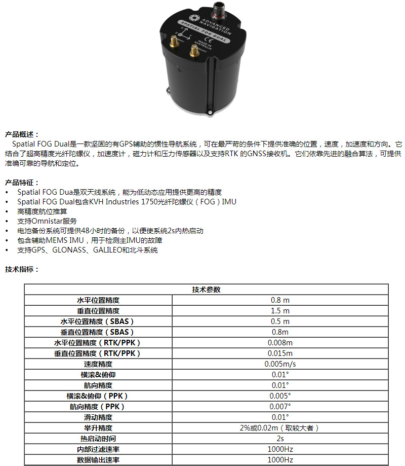 商品名稱(chēng):Spatial FOG Dual雙天線光纖組合導(dǎo)航