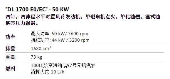 林巴賀L1700E0/EC航空發(fā)動機,"DL 1700 E0/EC" - 50 KW,四缸,四沖程水平對置風(fēng)冷發(fā)動機,單磁電機點火,單化油器,濕式油底殼壓力潤滑。