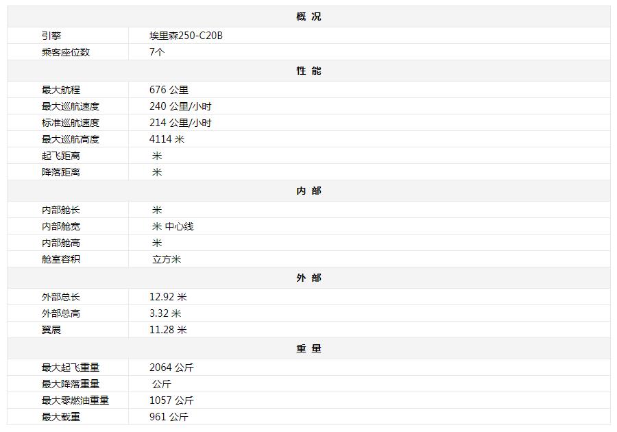 貝爾206直升機(jī)技術(shù)參數(shù)