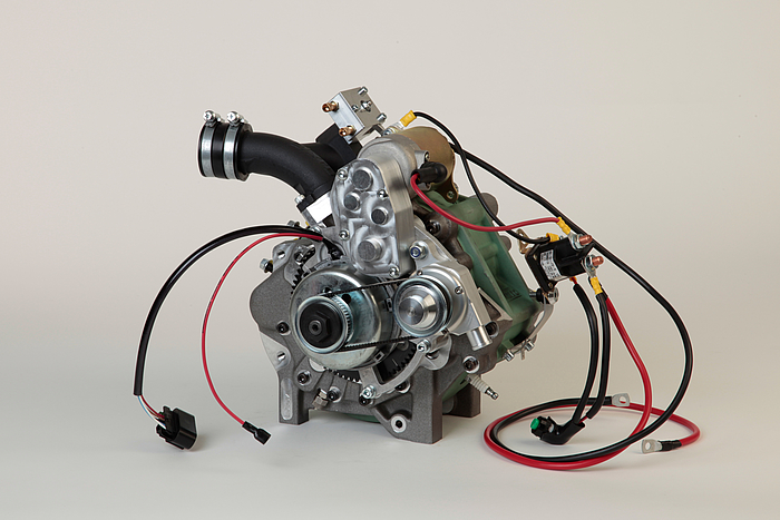 AIXRO XH40 是一款性能卓越的直升機發(fā)動機,并額外配有起動機、發(fā)電機和水泵。所有加裝件只有 19.5 公斤的重量,非常輕。發(fā)電機在 5000 rpm 時具有 75 W 的功率,足夠飛機上的所有儀器運行。因此,電池可在飛行期間充電。如果配備有一個水補償容器,則此款發(fā)動機也適合架空安裝。