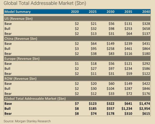 據國際投行摩根士丹利(Morgan Stanley)的預測,隨著飛行汽車技術和資本投入狀況的改善,城市空中交通(Urban Air Mobility)這一藍海市場將呈現(xiàn)顯著的增長勢頭,到2040年規(guī)模超過1.4萬億美元,其中中國成為最大單一市場,規(guī)模達到4300億美元。而如果市場超預期發(fā)展,前面的數字還將翻倍。