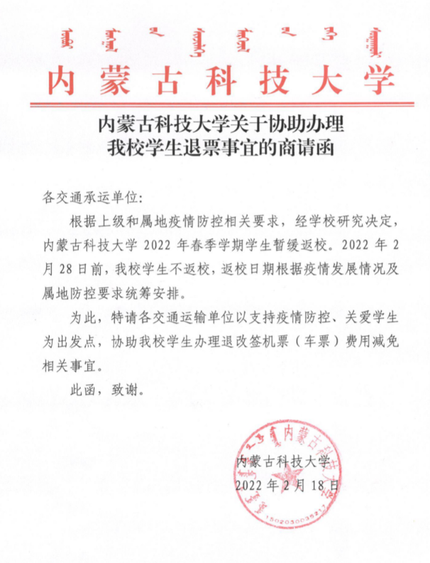 2022年2月18日,內(nèi)蒙古科技大學下發(fā)因為疫情關(guān)于延期開學的通知。并下發(fā)紅頭文件請求交通部門能對學生未出行的交通費用進行全額退款。本人購買的青島航空于2022年2月26日上午由長沙飛往包頭的飛機。因為學校防疫原因不得不退款,但仍然收取了本人191元的手續(xù)費,經(jīng)19日找到客服,客服一直說他們公司沒有學生相關(guān)政策。