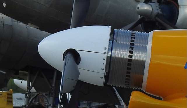 該機(jī)主輪放下狀態(tài),翼梢各有一個(gè)小輪用于滑行輔助。該機(jī)起飛時(shí)噪音很小