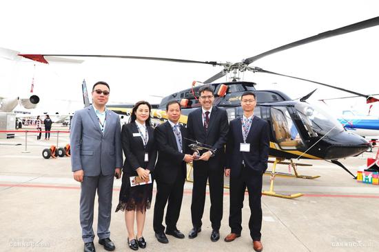 展會現(xiàn)場,陜直股份及德事隆集團旗下企業(yè)貝爾舉行了該架貝爾407GXi直升機的交付儀式,該機將由陜直股份組裝交付終端客戶后投入到商務及旅游市場。陜航集團總經(jīng)理董小兵及貝爾北亞區(qū)董事總經(jīng)理郝欣東(Jacinto Monge)出席活動。